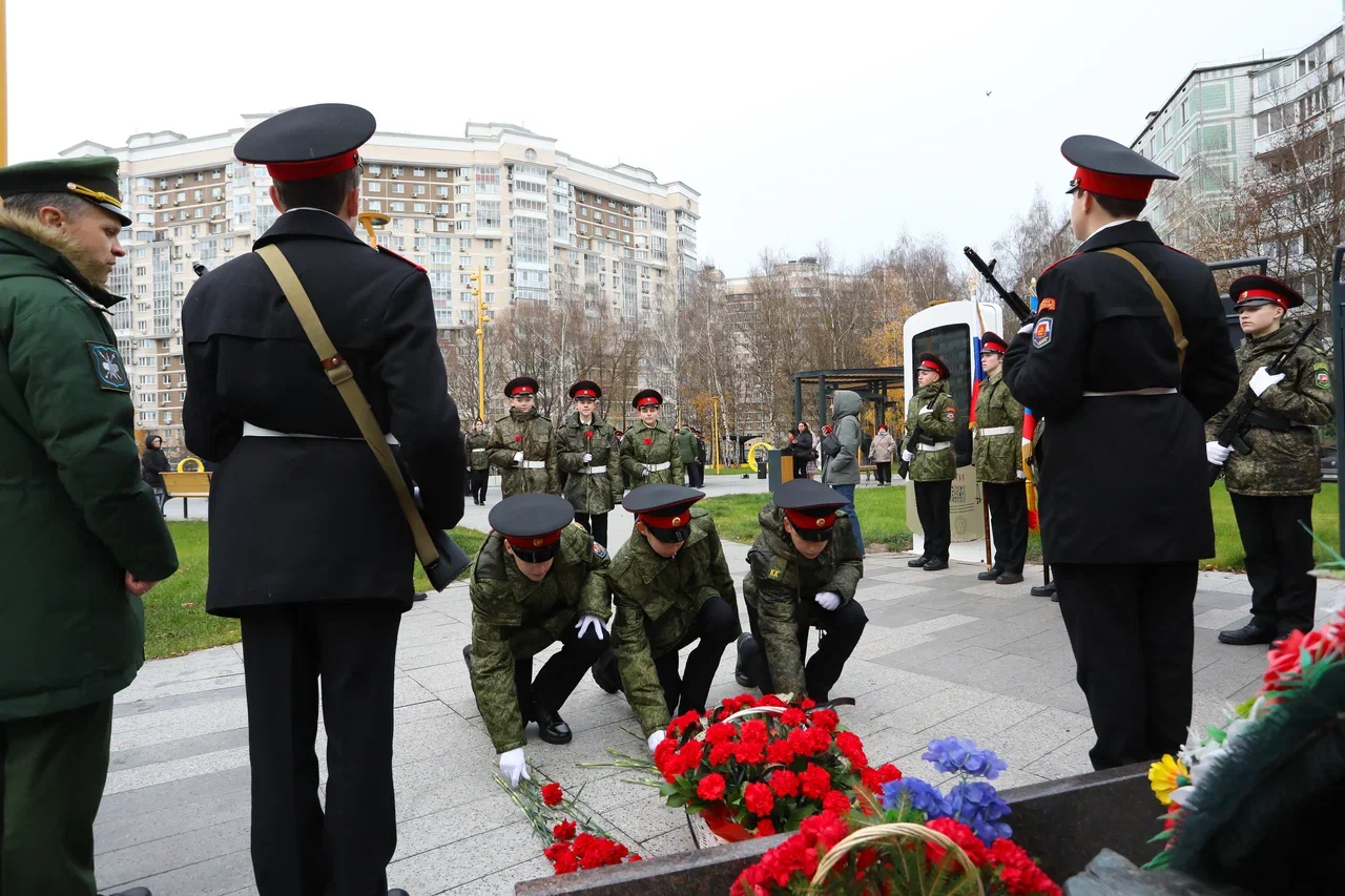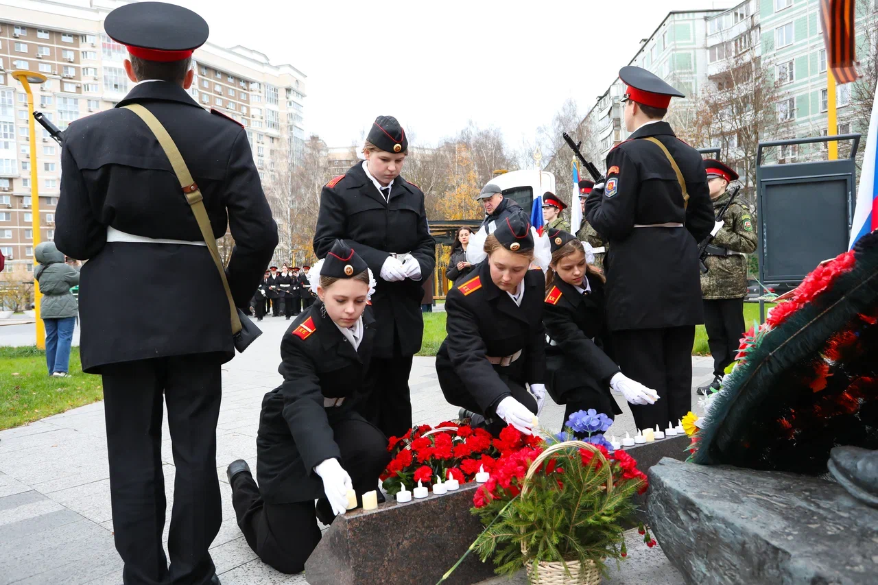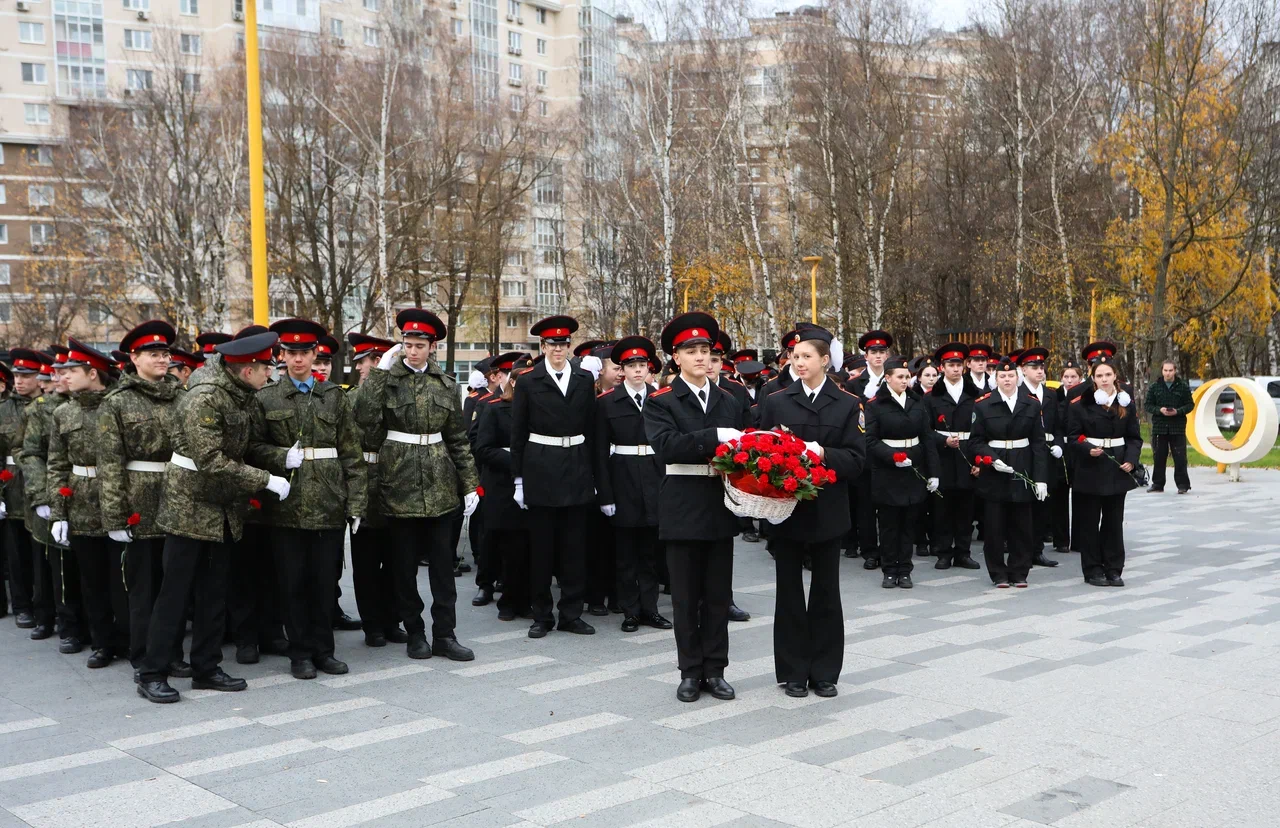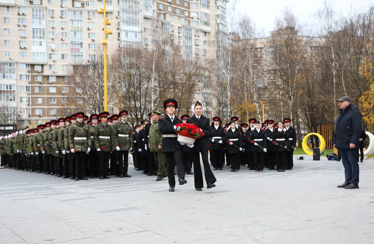 Особый торжественный момент акции — участие кадетских классов районных школ. В парадной форме, с выправкой и строевым шагом кадеты прошли от зоны отдыха «Тропарево» до монумента. А возложение цветов кадетами стало выражением глубокого уважения и благодарности защитникам Отечества.