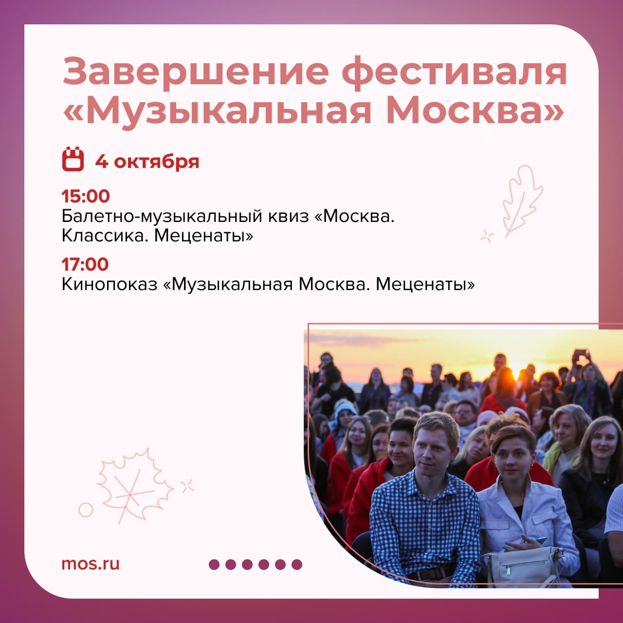 В программе фестиваля — лекции, концерты и кинопоказы о Петре Чайковском, Александре Скрябине, Сергее Танееве, знаменитых выпускниках Московской консерватории, а также об истории музыкальных театров столицы.