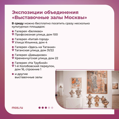 В определенный день вы можете бесплатно посетить культурные площадки из списка на сайте акции. Для этого нужна предварительная регистрация в «Мосбилете» с помощью Mos ID.